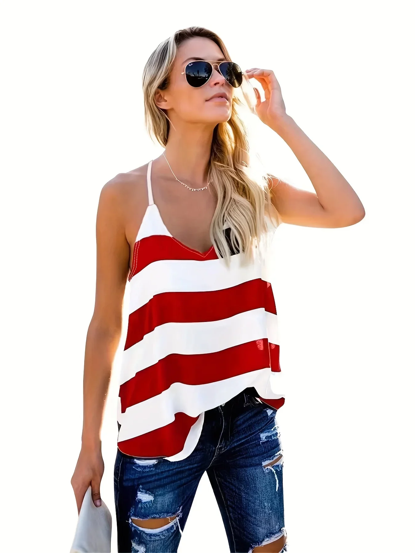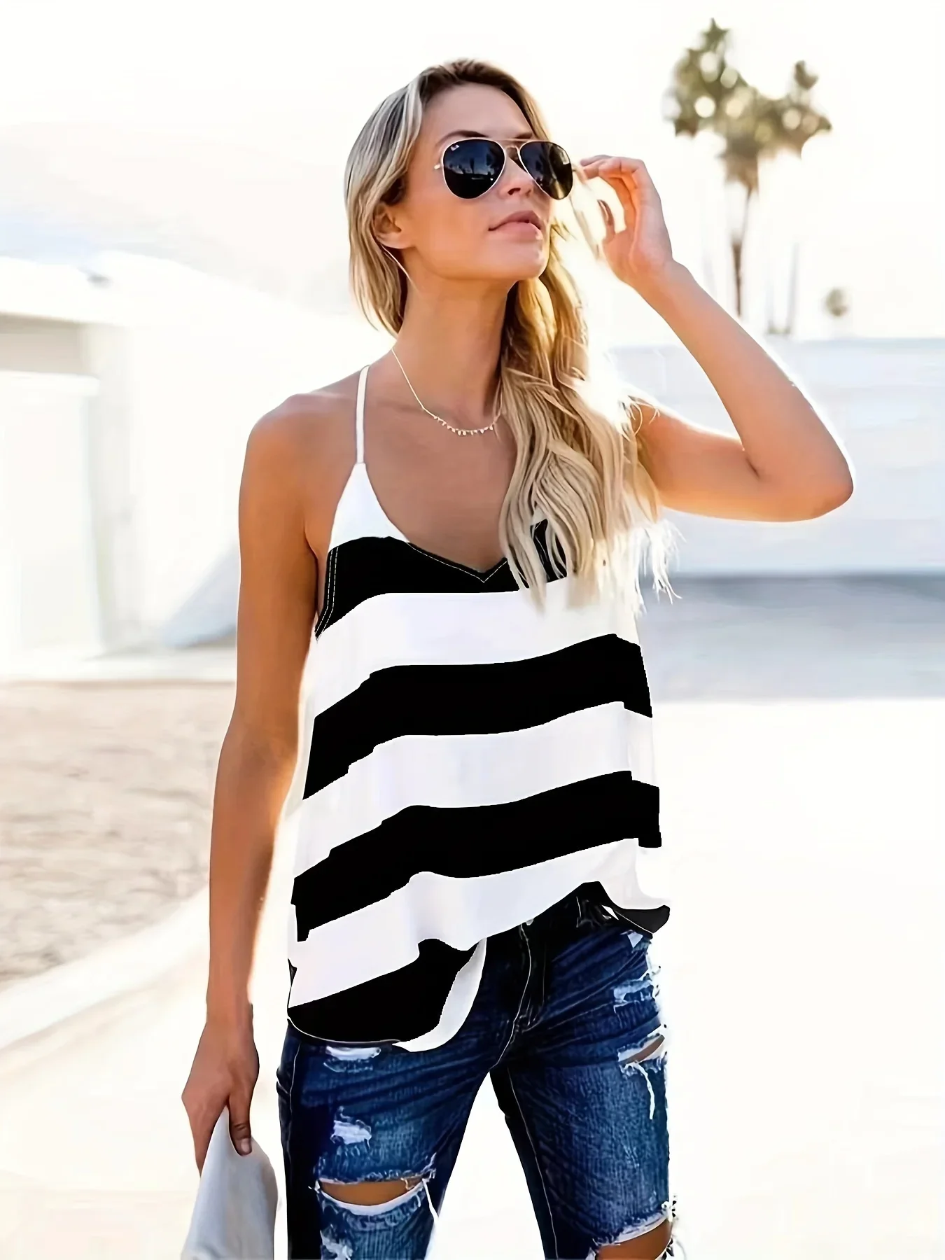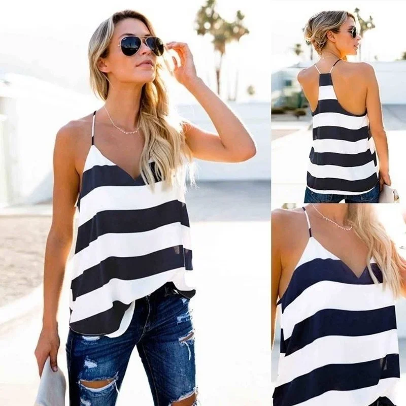 Basic Striped Camisole Adjustable Strap Tank Top S-XXL Womens