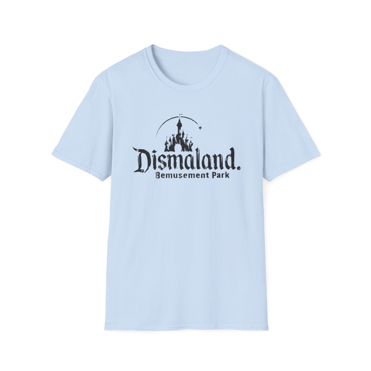 Dismaland: Bemusement Park! design, printed one colour soft-style t-shirt puts a new spin on casual comfort. Original design sold at Banksy exhibition Dismaland in 2015,The event had all the hallmark details of a traditional Banksy event, from its initial shroud of secrecy to artistic themes of apocalypse, anti-consumerism, and pointed social critiques on celebrity culture, immigration, and law enforcement. However, there’s one major deviation: the bulk of the artwork packed into three main interior galleries was created by dozens of other artists.