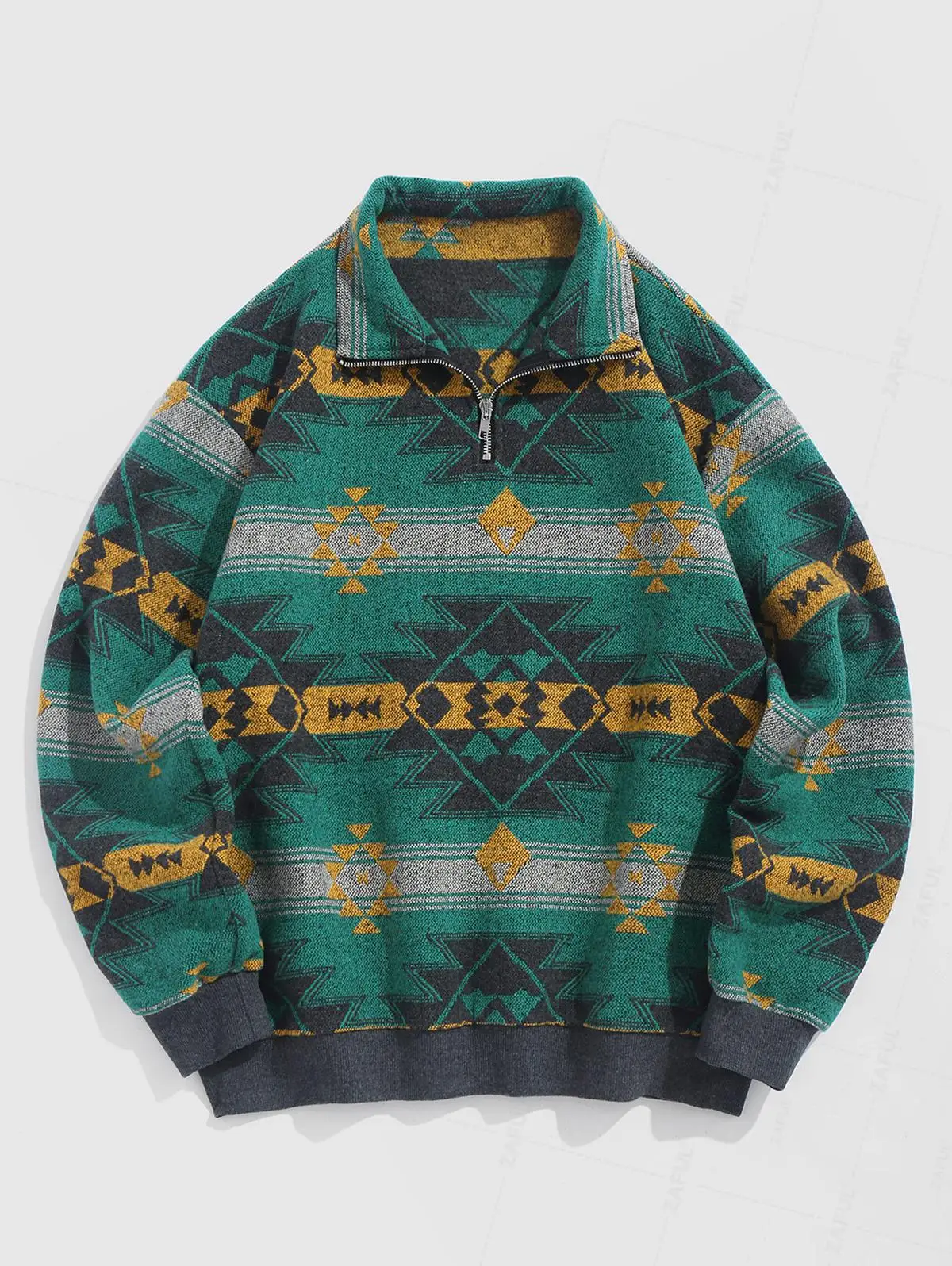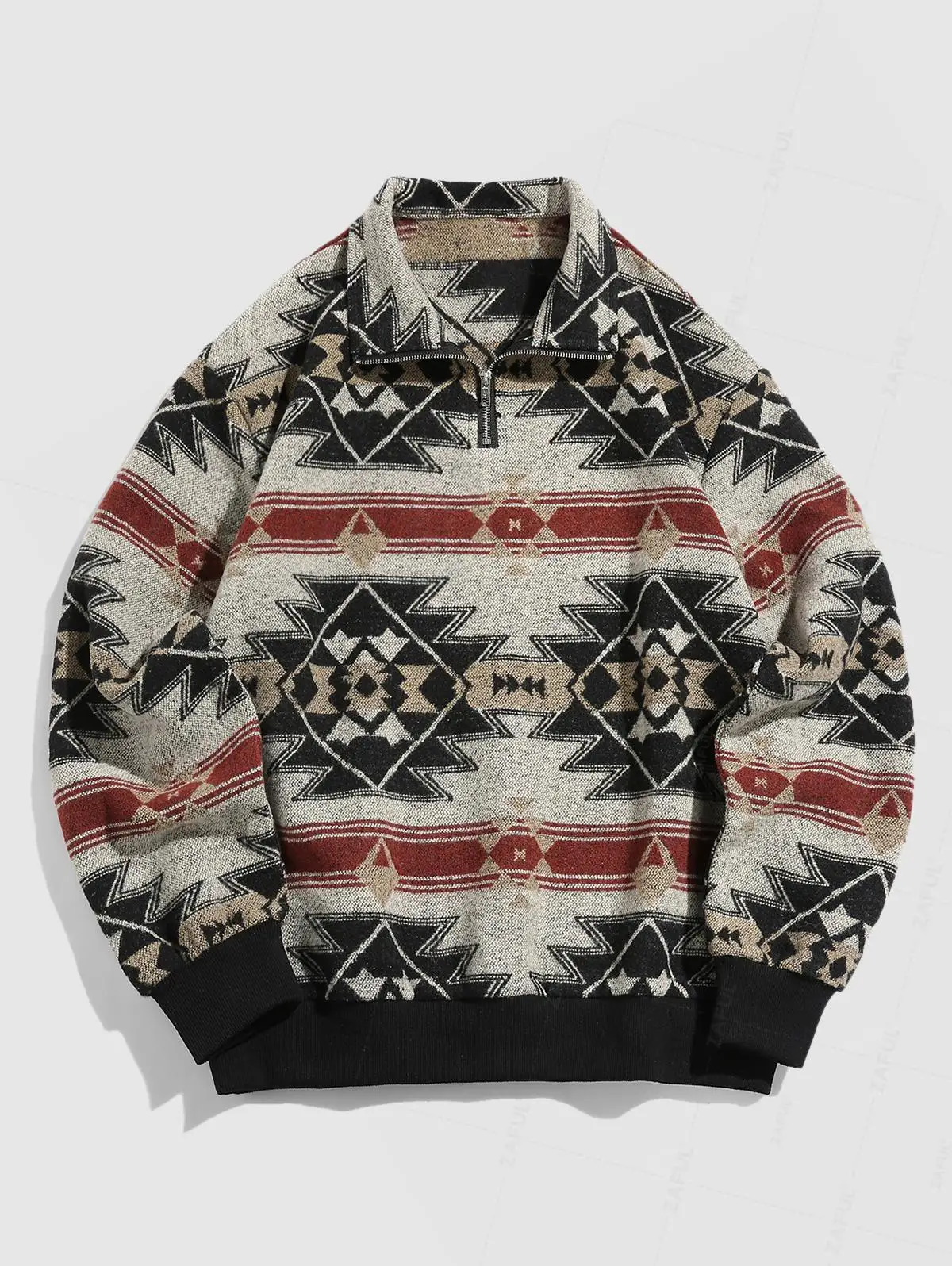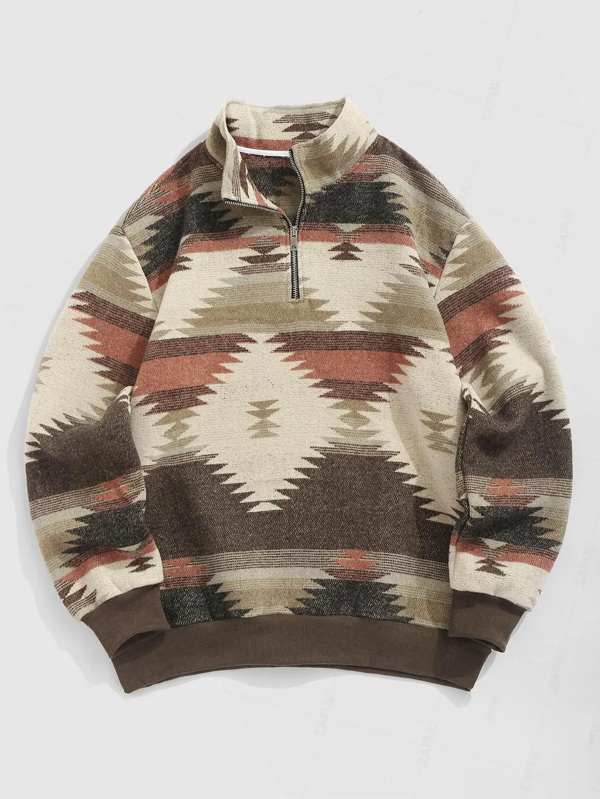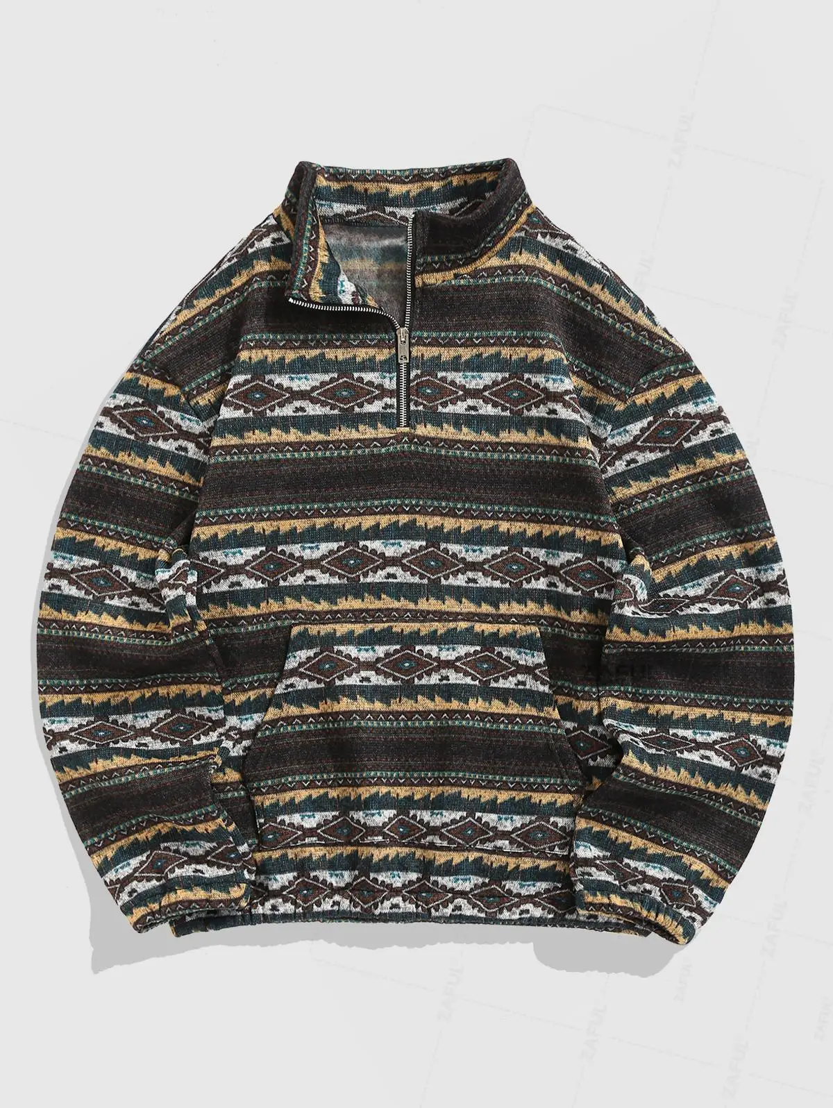 Ethnic Aztec Printed Fuzzy Fleece Quarter Zip Closure
