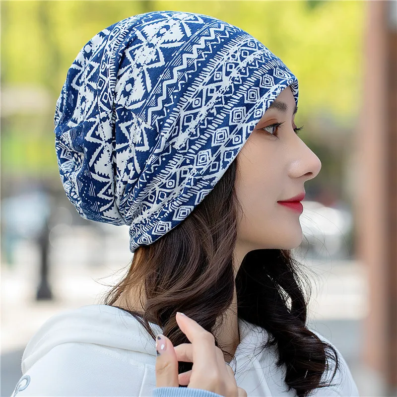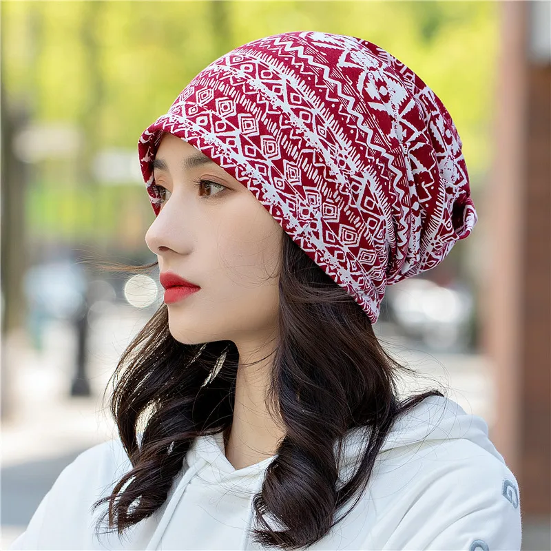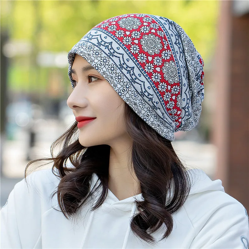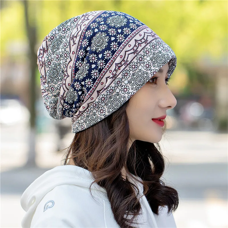 Ethnic style flower design scarf beanie