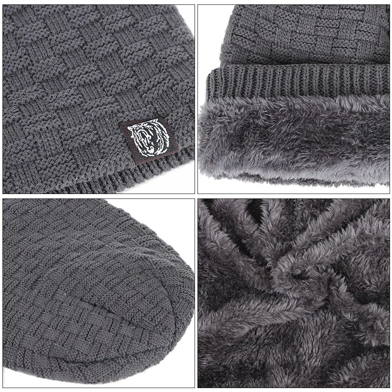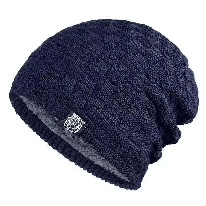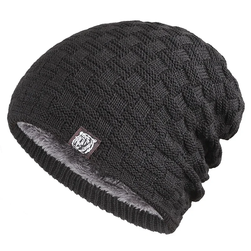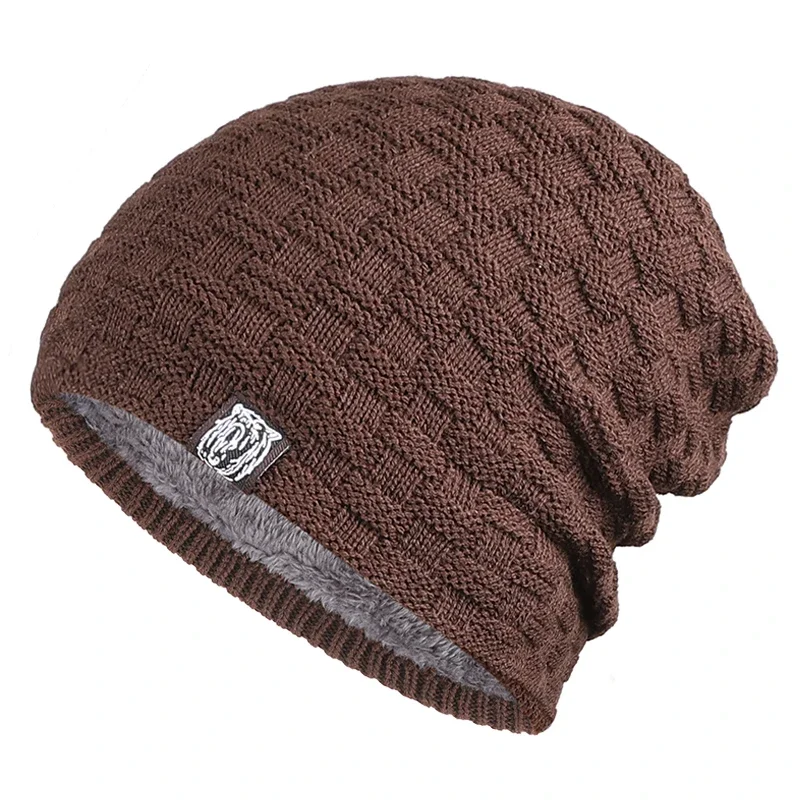 Knitted Beanie with lining six colours polyester /acrylic warm winter casual skullies beanies grey khaki black brown dark red navy
