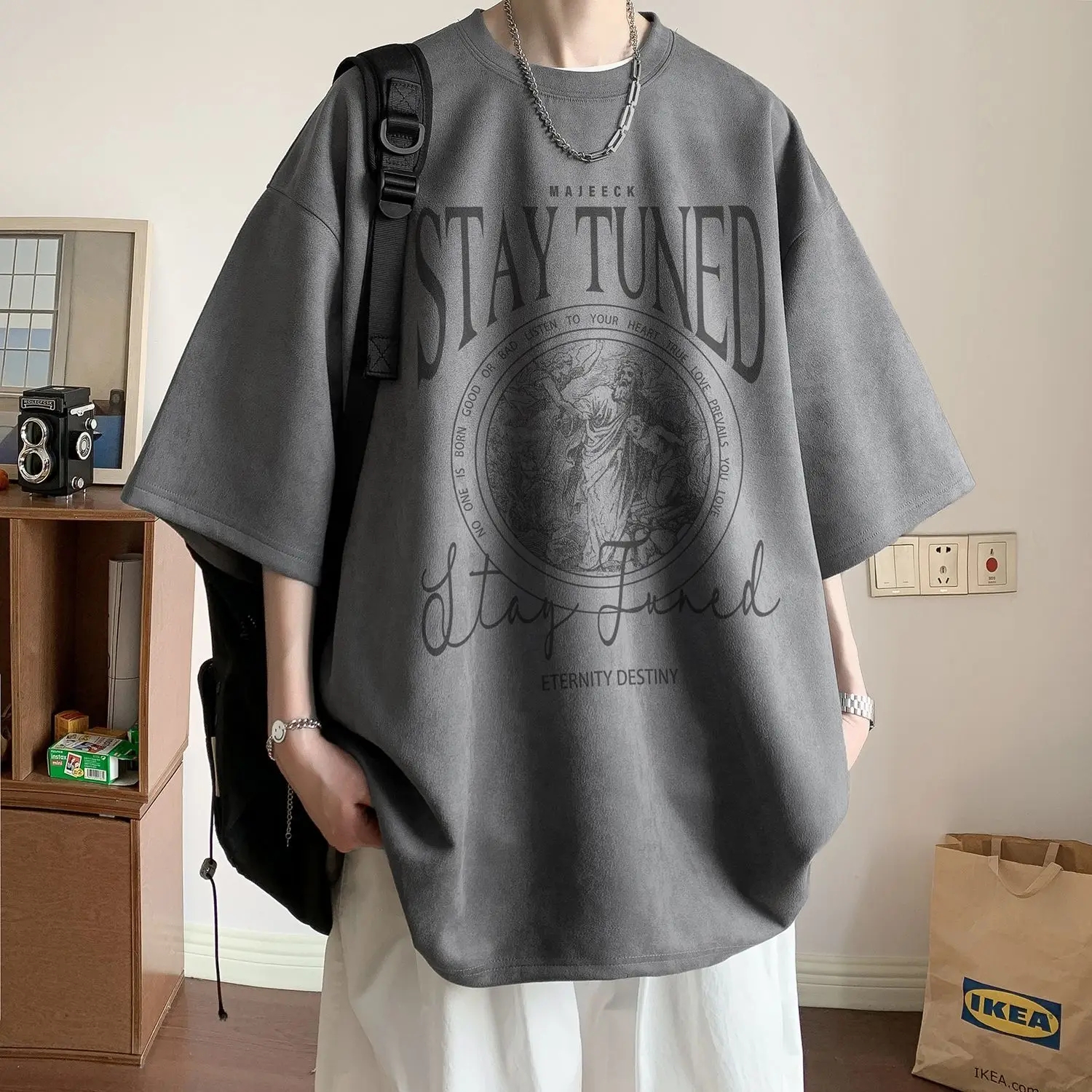 Military green short sleeved Baggy T-shirt PRINTED : Stay Tuned Design