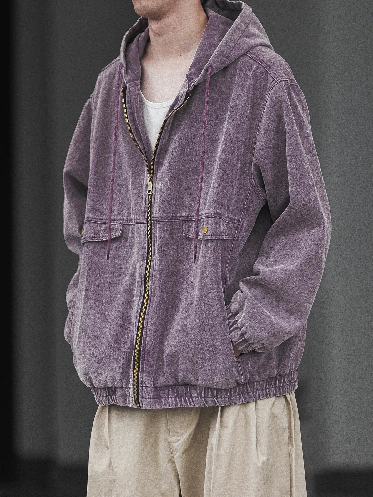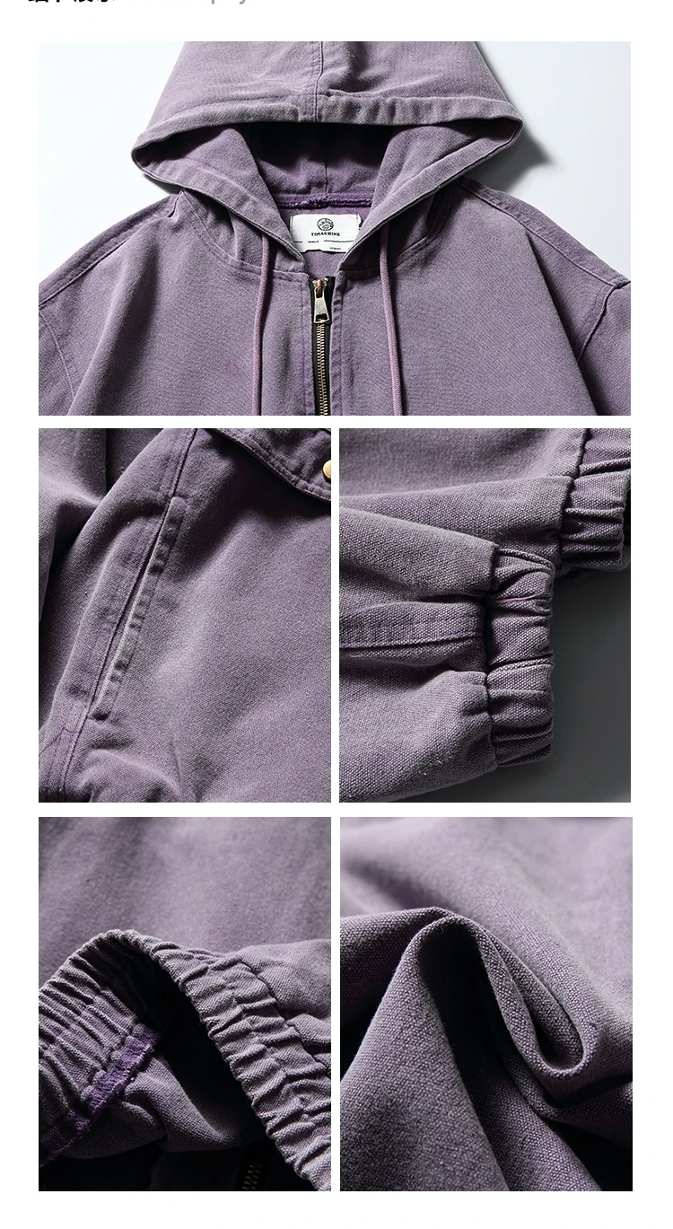 Purple Hooded Jacket High Quality Streetwear Zipper Cotton